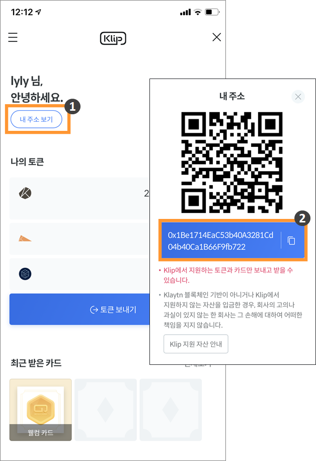 1. Check 'My Wallet Address' on Klip in Kakaotalk