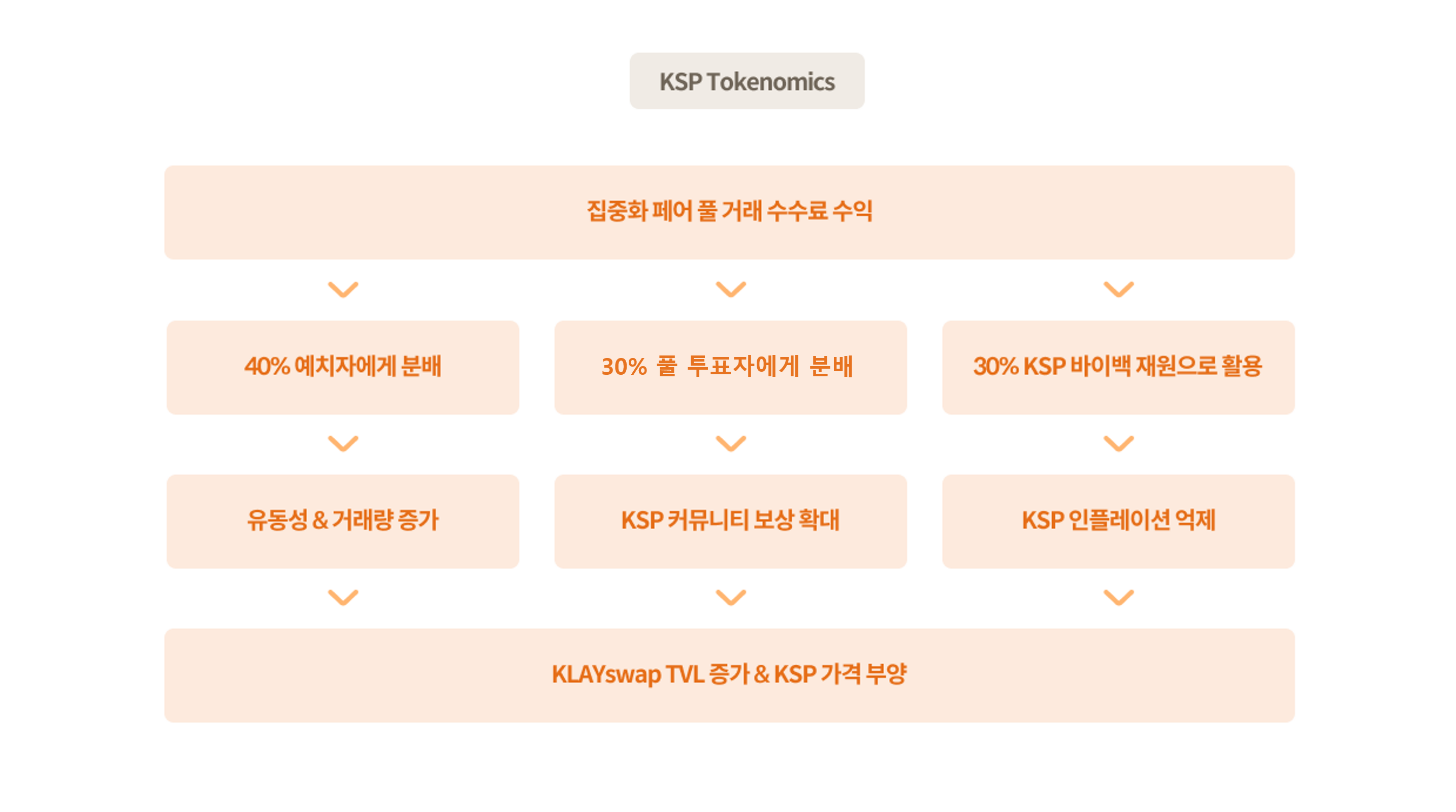 집중화 페어 풀에서 발생한 거래 수수료 수익의 나머지 30%는 KSP 바이백 재원으로 활용합니다.  KSP 바이백 확대를 통한 KSP 인플레이션 유통량 조절은 KSP 가치를 안정적으로 부양하고, KSP를 보유하려는 수요를 지속적으로 증가시킬 것입니다.